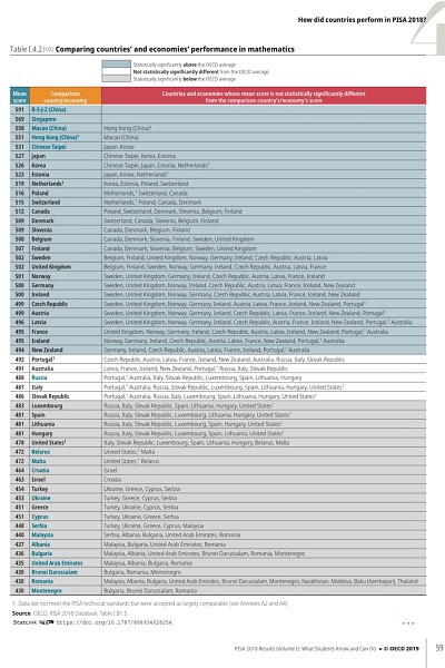 在数学和科学方面,16.5%的B-S-J-Z联合体15岁学生,13.8%新加坡15岁学生,数学达到了最高等级6级,具有高级数学思维和推理能力。在经合组织国家中,平均只有2.4%达到这一水平。与2015年PISA测试结果项目,英国、北马其顿,斯洛伐克,土耳其的数学成绩有所提高。