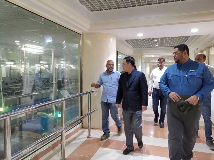 11月28日,应沙特阿拉伯水产养殖集团(NAQUA)邀请,驻沙特大使陈伟庆一行赴该集团总部进行渔业考察。陈伟庆一行听取了公司历史和经营现状情况介绍,并在公司负责人陪同下参观了虾类育种与养殖实验基地、产品冷冻与包装生产线、多功能实验室等,了解了沙特水产养殖业的发展动态。