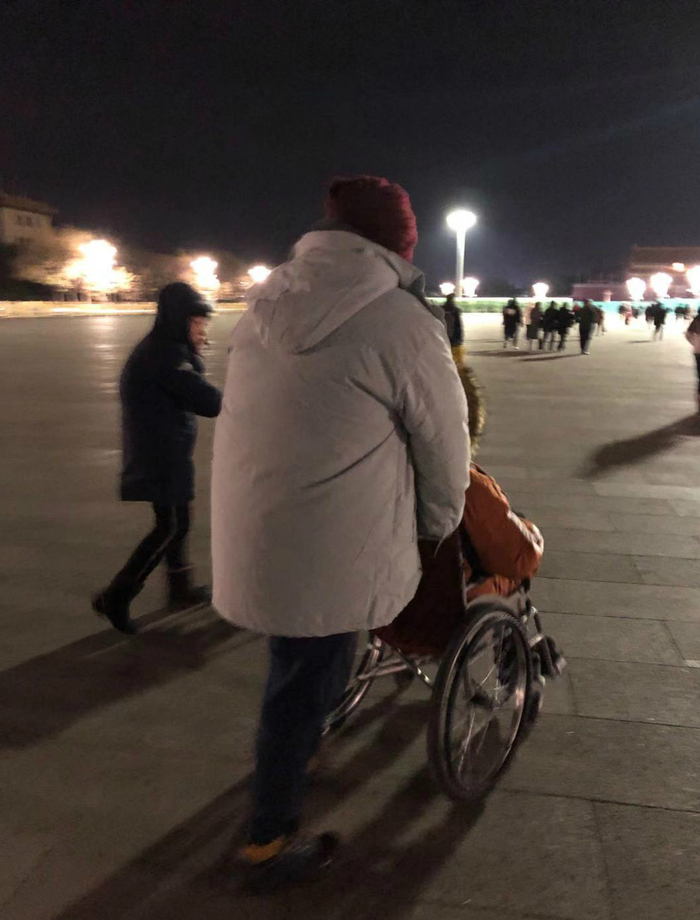 话音未落,通往广场的护栏打开了。如同刚刚的分析,所有人都开始迎风奔跑。婴儿被放在车里,老人被搀扶着,行动不便者坐在轮椅上,共同目标就是300米外的旗杆。先到者摆出胜利姿态,牢牢贴着绳站住,而后对着漆黑夜空中的旗杆连连拍照。哪怕此时距7点16分的升旗时间还有一个半小时。