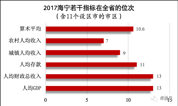 历经40年发展,2017年,在浙江省各县、县级市、11个设区市的市区中,海宁农村人均收入居全省第7位,城镇人均收入居全省第9位,人均财政总收入与人均GDP双双居全省第13位,算术平均的综合排位为10.6位。这是海宁改革开放40年的一份辉煌成绩单,也是海宁在新时期的新出发点。