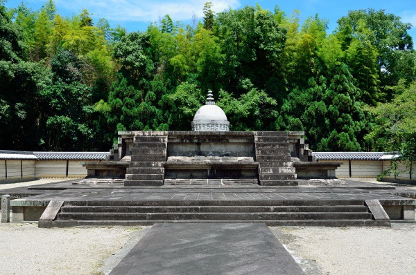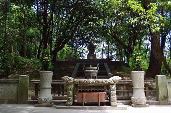 再往里,就是鉴真墓,为一片池水围绕的“孤岛”。墓边种着琼花,来自鉴真故乡扬州。御影堂就在墓地前的树林里,只是平日里大门紧闭,一年仅数日开放参观,稍不留意就错过了。