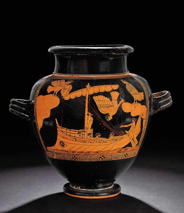 红色雕像罐,c480-470BC:罐上描绘的是奥德修斯