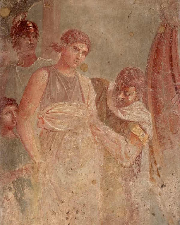 海伦出现在庞贝的一幅画中。当她走过跳板时,她的表情显示出了不甘、勇敢、畏惧。与所有诗歌抗衡,这是一件巨大的艺术作品,充满了不祥的预兆。