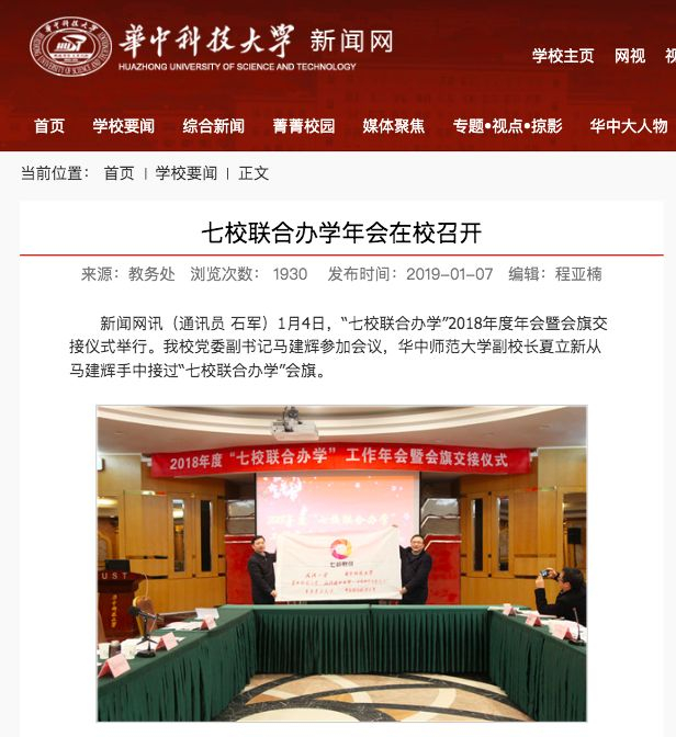 2019年1月4日,“七校联合办学”2018年度年会暨会旗交接仪式举行。会上公布的2018年度工作报告显示: