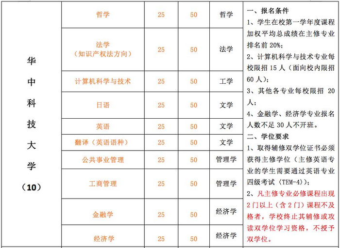 (另:我校中外合作办学项目(中韩班)、国际联合教学项目(中澳班、中英班、中美班、中新班等)学生,因不能同时参加国内和国外的课堂教学,故不能报名参加辅修双学位的学习。)