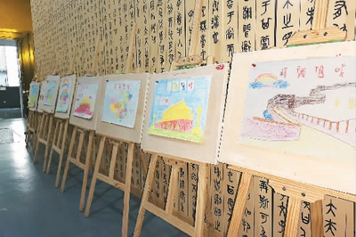 中国文字博物馆内孩子们的绘画作品,上面用甲骨文写着“祝福祖国”;
