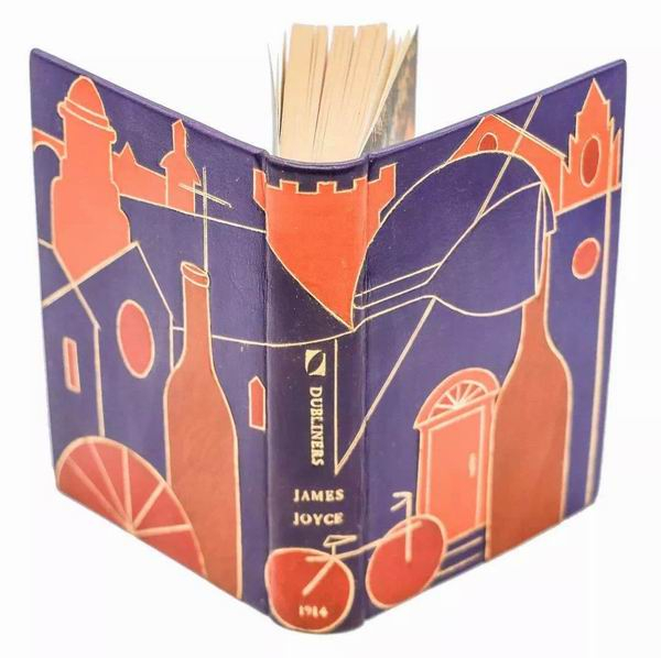 伦敦:Grant Richards Ltd.,1914年,初版一刷;印数1250册。装帧设计以都柏林市景及酒瓶、自行车、房舍大门口、教堂等元素构成。