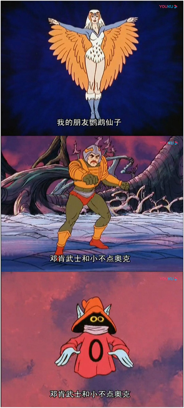 只有三个人知道亚当变身希曼的秘密,他们是鹦鹉仙子、邓肯武士和小不点奥克(Orko)。