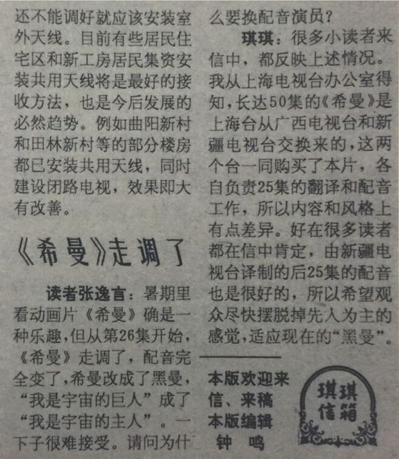 《希曼》是在1989年引进我国,共引进50集。译制工作是由广西电视台和新疆电视台分别完成的,两台各制作25集。由于两台是采取各自作战,互不沟通的模式,这导致了同一人物前后配音不一的现象,更出现了译名前后不一的罕见现象。动画名从广西版《宇宙的巨人希曼》变成了新疆版的《宇宙的主人希曼(读音是黑曼)》。不少观众还特意写信到电视台咨询这件事。