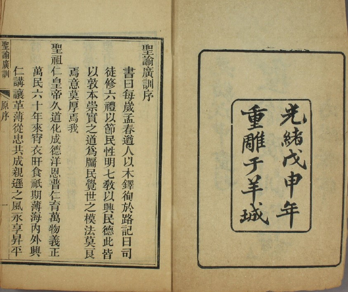 光绪戊申年(1908年)在广州出版的《圣谕广训》序言第一页