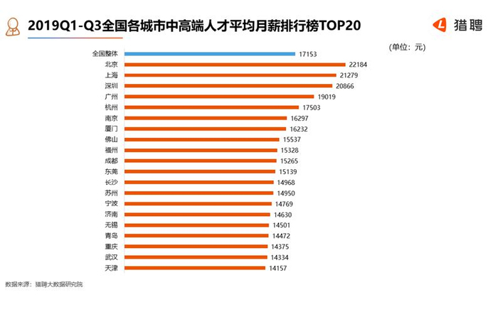 智联招聘发布的《2019年秋季中国雇主需求与白领人才供给报告》显示,本期北上广深的平均月薪环比涨幅均在3%以下,南京、宁波、武汉等新一线城市和厦门、佛山、南宁、贵阳、福州、无锡等二线城市平均月薪环比增幅在5%左右,与一线城市的薪酬差距缩小。