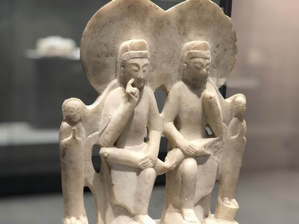参与考察的高研班成员邱元久说,青州博物馆展出的是当地近年来出土的雕刻精美、贴金彩绘保存较好的石质造像,时间自北魏晚期以迄北齐,其中以1996年龙兴寺窖藏的发现备受瞩目,出土造像所透露出的静谧深思、静定内省的气质,丰润优雅的姿态及动人的微笑给人留下了深刻的印象,诸城出土的这批石造像,时代特征明显,发展脉络清晰。其中4件有纪年铭刻的造像为分期断代提供了可靠的依据,“齐鲁大地果真人间蓬莱,并蒂莲华。另博兴县博物馆的双身像像座与神王像座、太子像既兼具青州本地造像风格特点亦有明显的河北元素。”