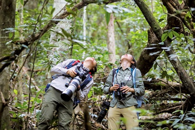 清晨6时,队员们起身肃静,仰头看向周边高大的乔木树冠,侧耳四面搜听。