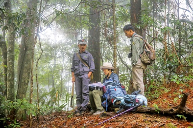 次日凌晨继续上山调查。但一场突降的暴雨延缓了调查组上山的节奏。雨过,为追回时间,调查组决定走更陡峭的小路。由于小路长期无人行走,枝蔓纵横,很多路段要躬身才能通过。李文永和韦富良轮番走在前面,不断挥舞柴刀劈出通道,成功带领小组按时赶到监听点。