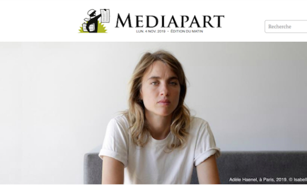 11月4日法国媒体Mediapart网站首页头版哈内尔幼年被性侵报道截图。