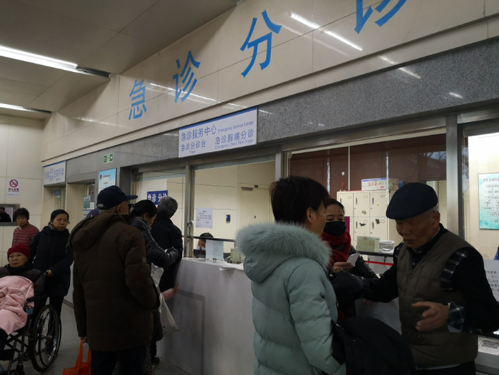 “您好,挂一个急诊胸痛门诊的号……”昨天(12月4日)上午9时,在急诊分诊窗口,一位家属在挂号,一个老爷子在家人陪同下量血压。几分钟内,就有5、6个人挂了急诊胸痛门诊的号。