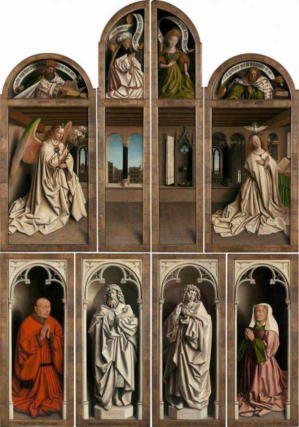 休伯特·凡·艾克、扬·凡·艾克,《根特祭坛画》(外),1415-1432,根特圣巴蒙教堂