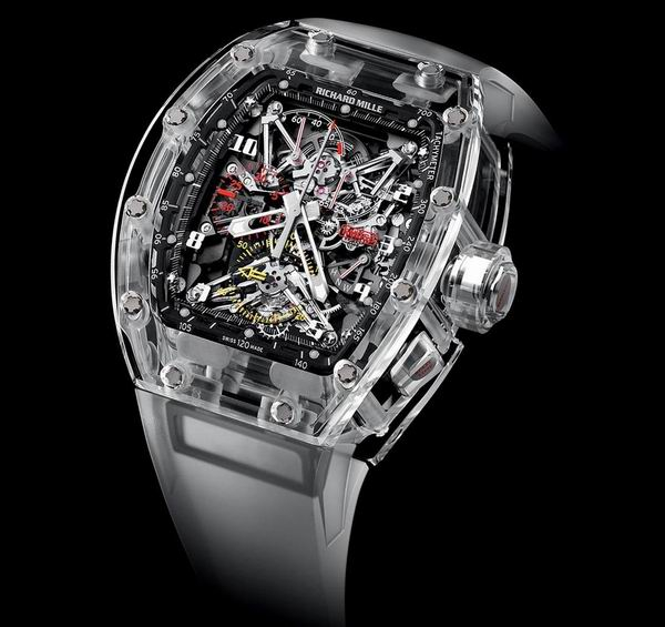 2012年,独立制表品牌RICHARD MILLE在日内瓦表展SIHH上发表了新作RM-056腕表。这枚腕表一经面世便技惊四座,因为这块表不仅表镜是蓝宝石水晶打造,更厉害的是结构复杂的表壳都全面采用蓝宝石水晶打造。由此点亮了高级制表领域蓝宝石水晶表壳的“科技树”。