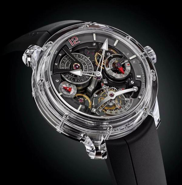 花费这么多心血,其实归为一句话,就是蓝宝石水晶的材质太硬但也容易裂,做成平滑的表镜容易,做成结构复杂的表壳就难比登天。这就好比雕刻橡皮印章和雕刻青铜像一样,都是雕刻,技术难度上完全不是同一种概念。此后蓝宝石水晶的表壳成型工艺越来越成熟,也让更多制表品牌开始尝试这种全新材质,不少未来感的时计便是在此后陆续诞生的。