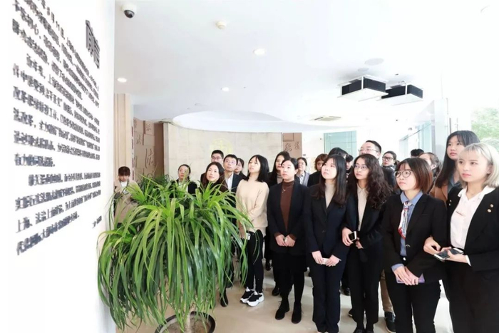 被邀请的法学院学生代表们,由讲解员带领他们参观了院史馆,详细介绍了上海高院司法公开、审判执行、文化建设等工作。