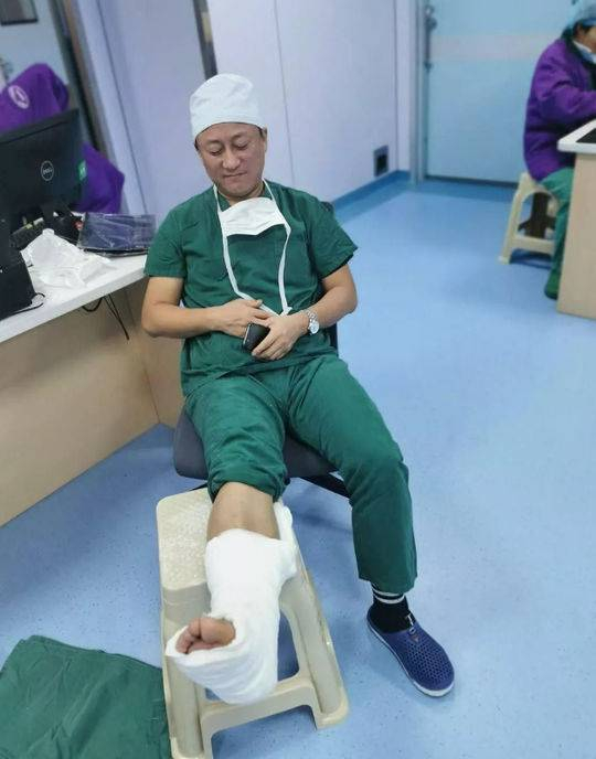 身穿绿色手术服,手握一纸文件,坐在滑轮转椅上,单脚蹬地,瞬间转移。近日,一个短视频在成都医疗界微信朋友圈火了。据了解,视频中的“滑轮医哥”是成都市中西医结合医院麻醉科医生党亮。不久前,党亮下班后参加医院羽毛球队活动,不小心扭伤了右脚,到本院骨科就诊。骨医生陈志超经核磁检查发现,党亮右脚腓距前韧带撕裂。“打石膏、杵拐杖、戴护具,尽量躺床上,没事别乱动。伤筋动骨100天,你这盘起码要休息一个月以上。”陈志超要求党亮配合治疗,否则会影响伤口愈合,甚至留下后遗症,导致复发。