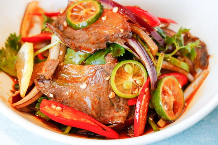 富含肌肉纤维的牛腱,加入青柠、辣椒等之后变得酸辣可口,牛肉的香气更为浓郁。