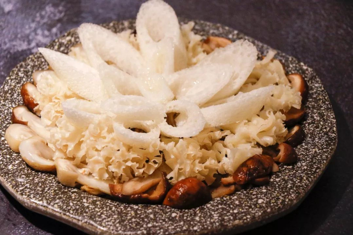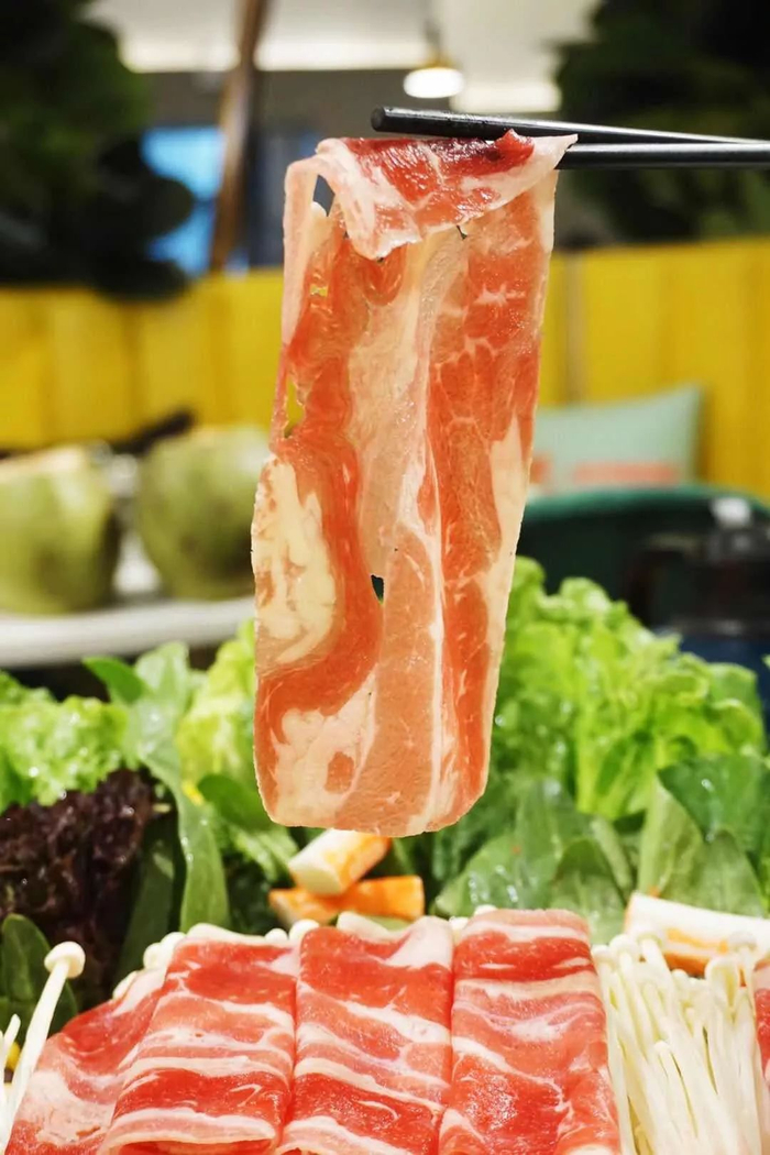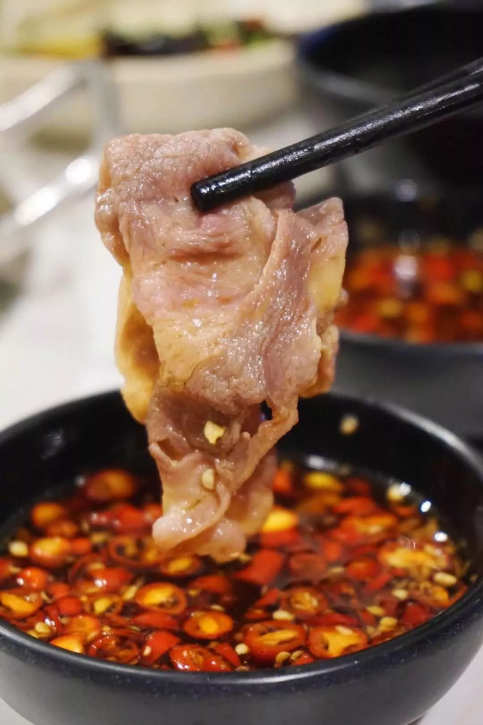 拥有大理石般好看纹路的澳洲雪花肥牛,片片厚实,煮过后肥而不腻,弹牙香浓。