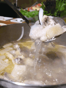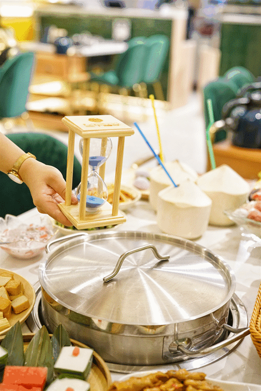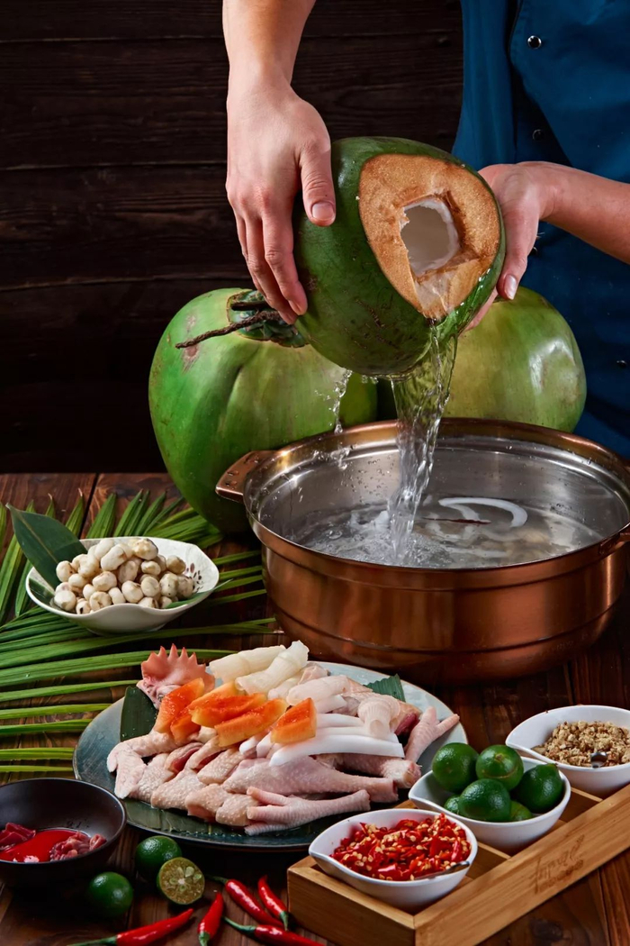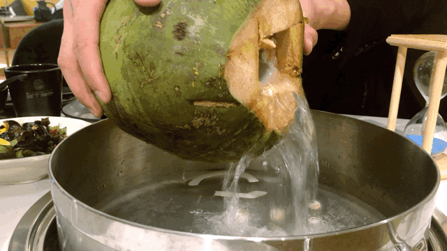 锅底准备好,待椰青汁汤水滚烫后
