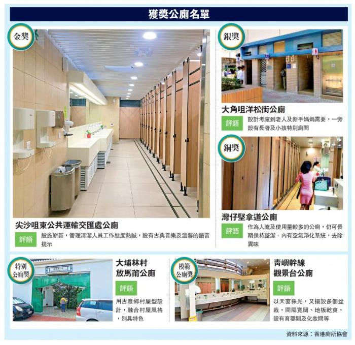 “厕”文化直接影响游客对一个城市的观感。香港厕所协会于10月在全港18区抽查160个厕所,位于尖沙咀东(么地道)巴士总站、毗邻永安广场与多间酒店的“尖沙咀东公共运输交汇处公厕”夺得金奖。