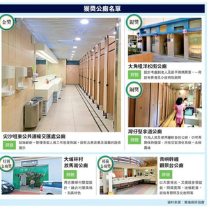 至于获得铜奖的湾仔坚拿道公厕,协会称是港岛区其中一个使用率最高的公厕,难得员工能保持厕所整洁干净。由于刚翻新过,设施较干净,而且加装了空气净化系统,强烈异味得以解决。