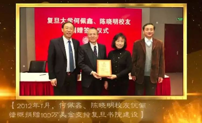 这次捐赠并非两位老人首次回馈母校,他们曾于2012年1月捐赠100万美元支持复旦书院建设。