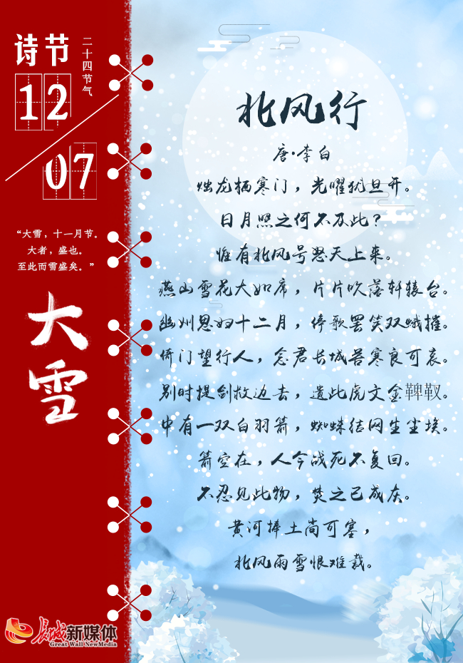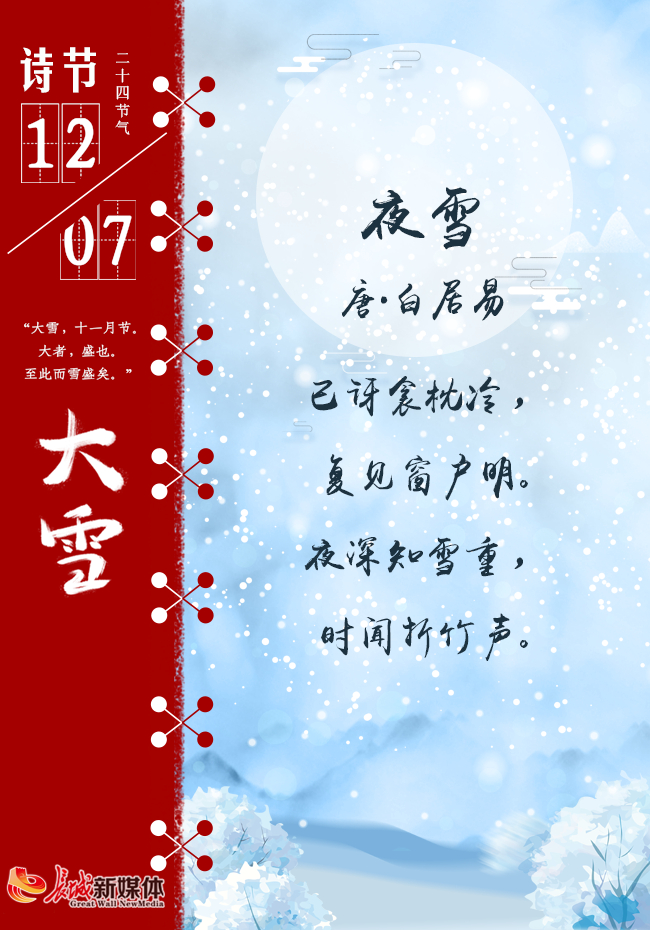 “大雪”是农历二十四节气中的第21个节气,标志着仲冬时节的正式开始,大雪纷飞时,古人或围炉夜话,或赏雪赋诗,十分风雅。今天,小编分享八首大雪诗词,我们一起在诗词中,体会大雪时,诗人的所思所想。