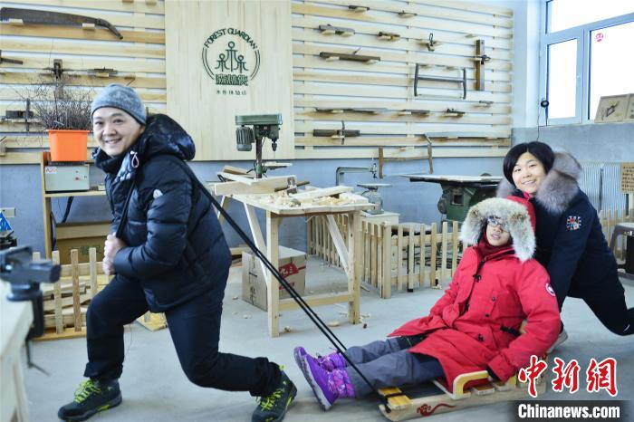 游客在伊春永达工艺研学体验基地体验亲手制作的冰爬犁 葛照玉 摄