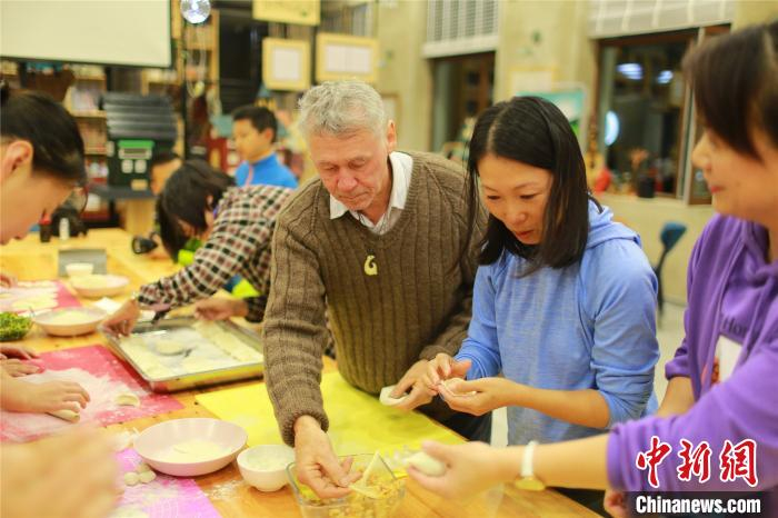 游客在伊春岭尚欲雪民宿一起包饺子 温蕴 摄