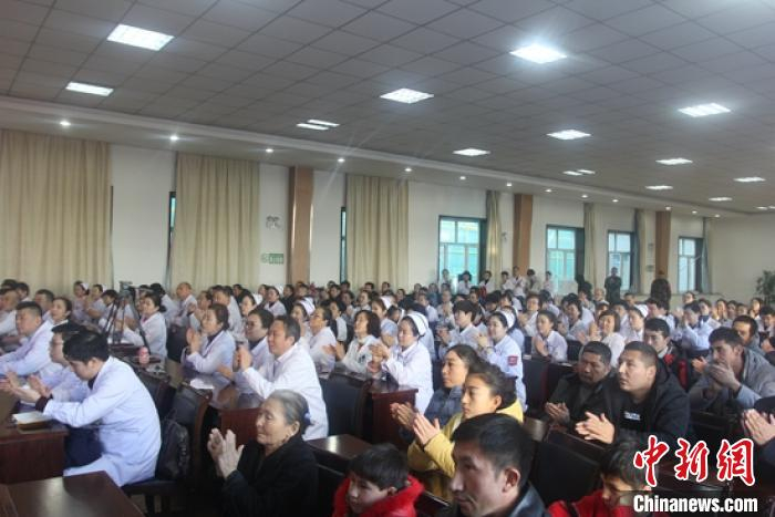 “爱心守护一光彩·民生银行先天性心脏病救治”项目启动仪式,患者家属和医护人员参加。 陶拴科 摄