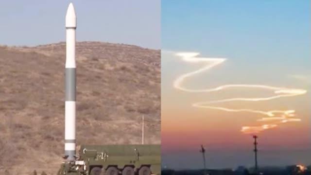 视频:中国火箭发射创新纪录 火箭云奇观照耀华北大地