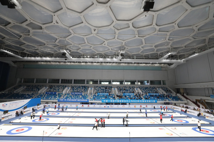 国家游泳中心于去年12月26日启动从“水立方”向“冰立方”变身的冬奥改造项目,通过搭建转换结构面层、安装可拆装制冰系统,制作出4条标准冰壶赛道场地。