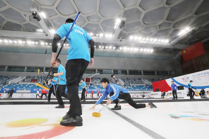 五星红旗高高悬挂在“冰立方”场馆上空,崭新的冰壶赛道上,激烈的比赛蓄势待发。“一二三,加油!”青少年运动员们兴奋击掌,为彼此加油打气。
