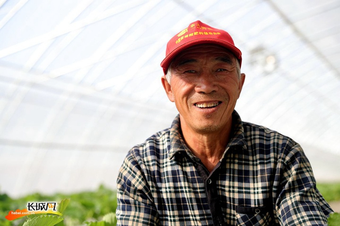 63岁的忻龙忠在草莓园工作,每个月至少都能收入3000块钱。长城新媒体记者 马宁 摄