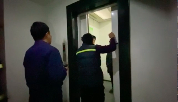 到场后,消防员和物业公司的工作人员汇合,并先来到了一楼。“我们用物业的电梯钥匙打开了一层的电梯门,发现轿厢并未停在一楼。” 陈全虎说。
