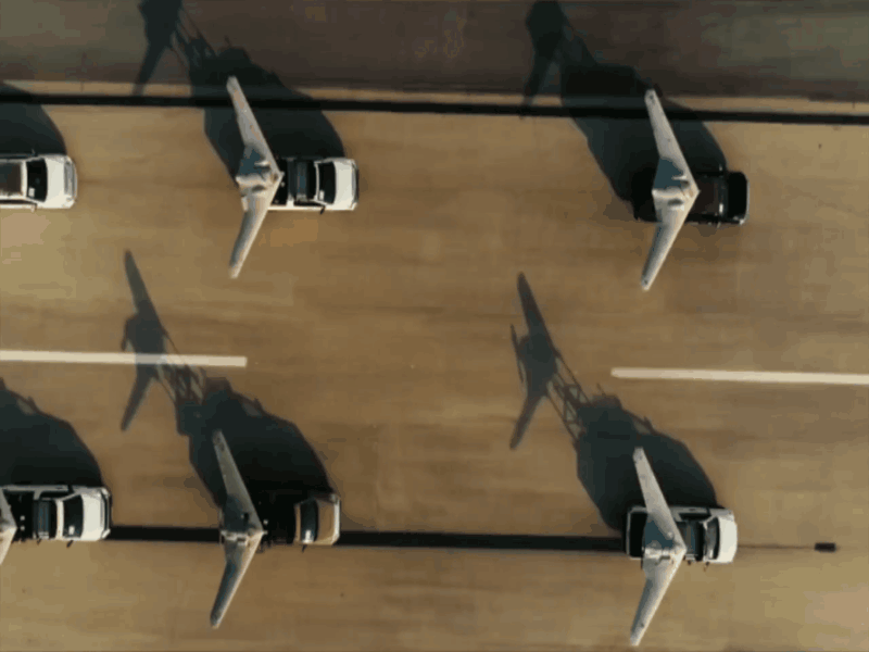 军演视频中展示的“见证者”-123小型攻击无人机群,可见其略带前掠角的主翼布局。
