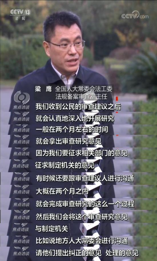 梁鹰说:“客观上讲,这样的规定它是直接违背宪法的。我们经过审查研究以后,认为这样的制度对于保障公民的合法权利是不合适的,我们建议地方予以纠正。”