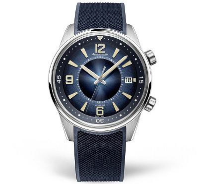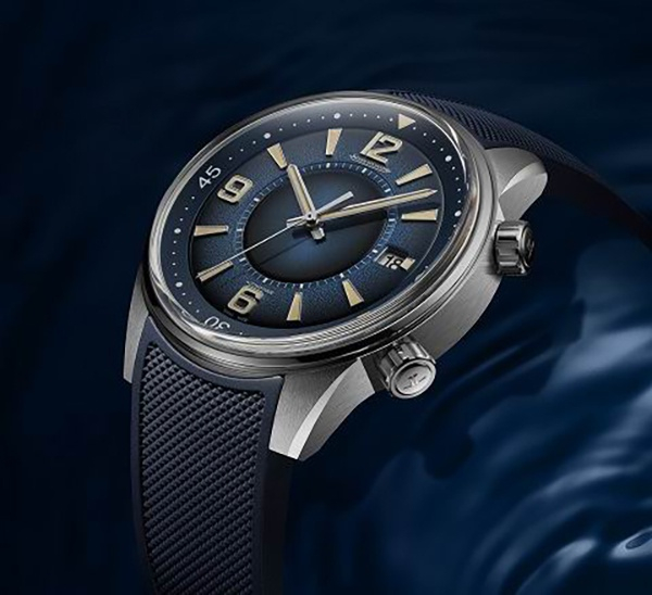 积家北宸系列日历腕表从诞生于1970年的第二代积家北宸系列汲取灵感,以独有的全新手工漆面,搭配蓝色双渐变表盘,融合太阳放射状饰纹、粒纹及蛋白石装饰处理。中央圆盘和主表盘分别加入闪亮且变色的处理效果,从颜色较深的蓝绿色向明亮的宝蓝色渐变过渡。饰有巴黎铆钉饰纹的蓝色橡胶表带也是该表款的特色,与内表圈的配色相得益彰。内表圈沿袭自经典原型Memovox极地响闹腕表和第二代积家北宸系列腕表,可通过旋转开启更多功能。