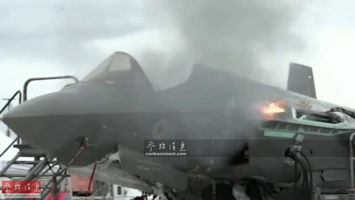 前侧面角度拍摄的F-35A进行地面航炮打靶测试视频截图