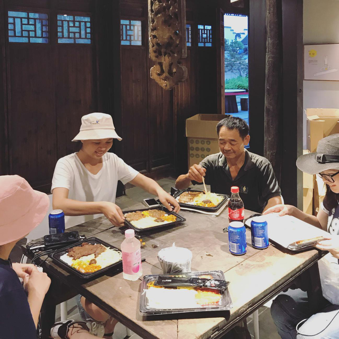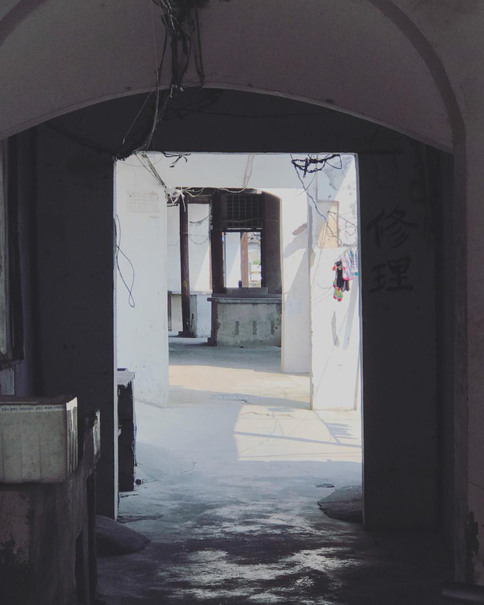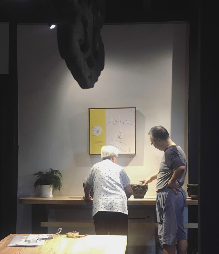 八月,布展临近结束的一天,工作至夜,在沿河厅与徽州师傅在明代方桌上吃外卖,那一刻觉得还蛮奢侈。