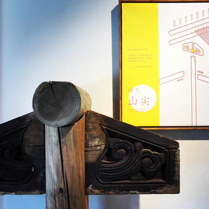 总之,我们一方面避免做一个“官式标准称谓”的展览,希望这些构件的叙述能反映它们的地方 特征,另一方面,我们又不希望描述的文字太过晦涩而变得太过小众。具体操作上,我们以南方 古建代表文献《营造法原》为基础,辅以徽州民居相关资料,为每个木构件及其纹样的意义寻找 合适的阐述方式。