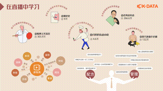 老铁爱玩也爱学,职业、素质、学科、三农……教育直播内容极其丰富。快手用户闫妈妈教小吃制作,掌握一门这样的手艺能让许多小镇青年在大城市安身立命;学科教育直播也承包了很多中小学生的时间,在报告中可以看到,有关单词的英语课程最多,数学课程中“函数”则获得老师和学生的一致重视。此外还有教种玉米的专家,手把手教画画的美术生小哥哥,就连“管理”这样看似高大上的词,在快手教育直播里还有各种花样,“狗狗随地大小便行为管理”“烧烤店营销管理”“草莓定植后田间管理”“韩式皮肤管理”,让人大开眼界。