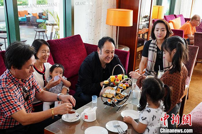 图为黄伟麟带着一家人到澳门路环过周末。中新社记者 崔楠 摄