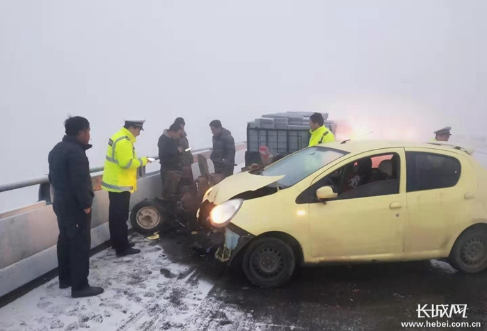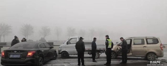 邢台南和:路滑雾大,18辆小车连环相撞
