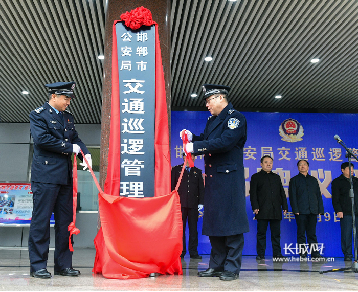 最后,曲斌与张永良为邯郸市公安局交通巡逻警察支队揭牌,马占山与申拥军共同为邯郸市公安局交通巡逻管理局揭牌。